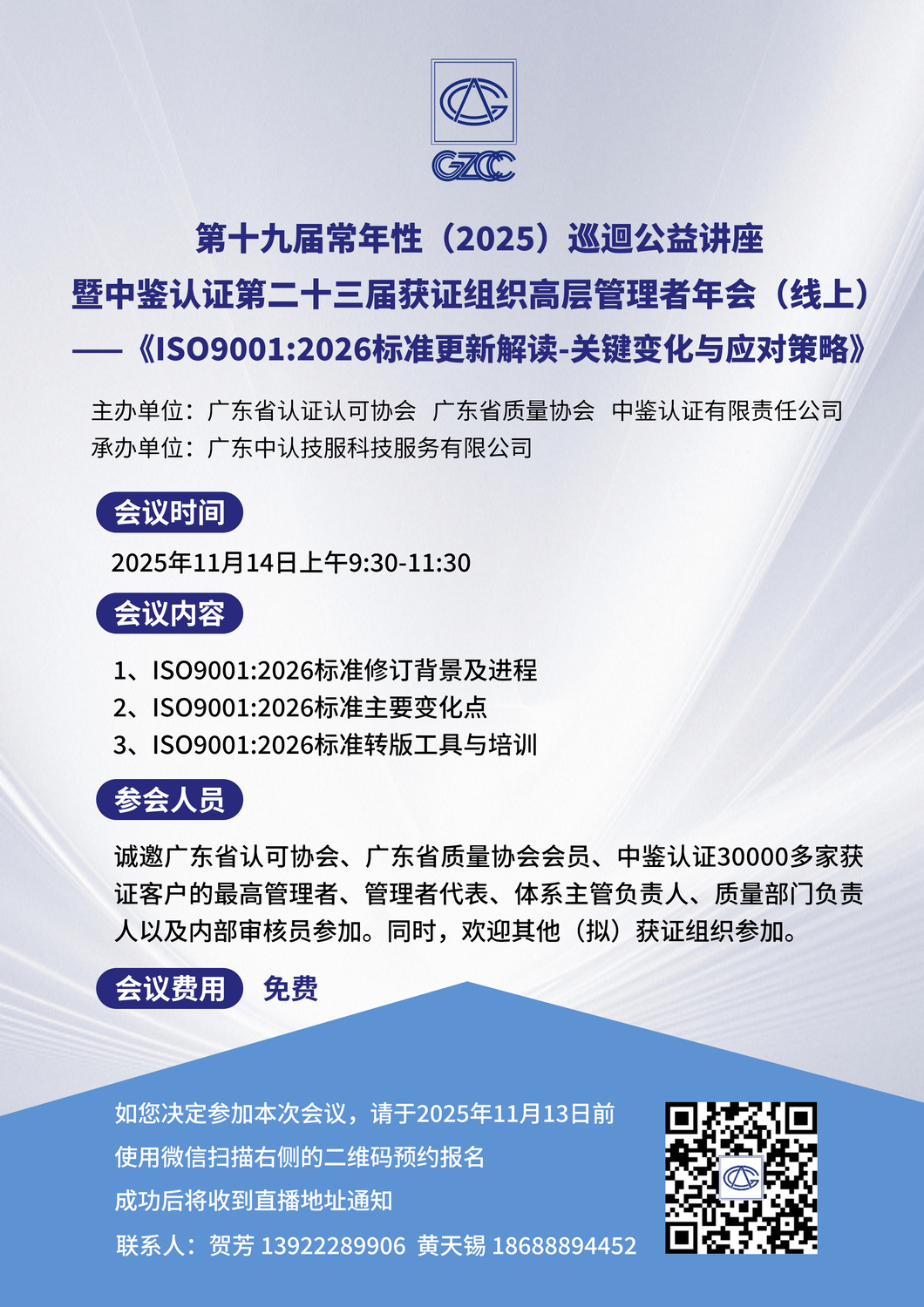 中鉴认字[2025]68号 关于联合举办第十九届常年性(2025)巡迴公益讲座暨中鉴认证第二十三届获证组织高层管理者年会的通知